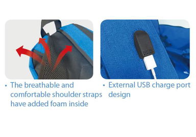 Zostań partneremPlecak z wielowarstwowej, wytrzymałej tkaniny. Komorna główna + kieszeń na zamek + kieszonka boczna. Komfortowe szelki z dzianiny dystansowej wypełnionej gąbką. Zewnętrzny port USB. Wymiary plecaka: 440 x 310 x 150 mm. Karta produktu - 87731D