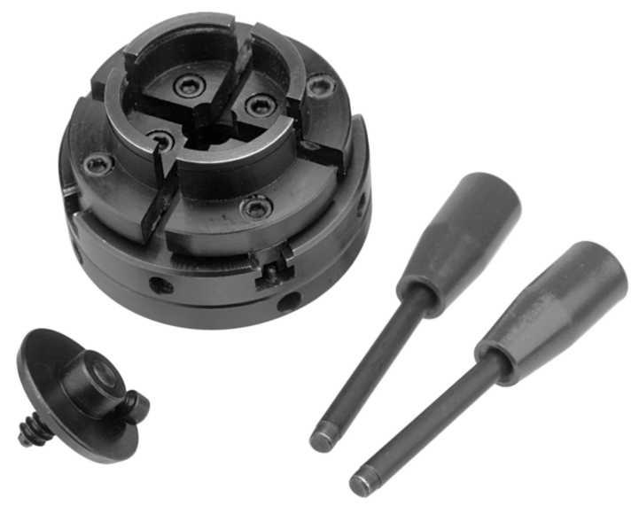 Zostań partneremUchwyt czaszowy do wrzeciona z gwintem M33/M24 z 4 centrowanymi szczękami segmentowymi, do mocowania wewnętrznego i zewnętrznego np. przy toczeniu czasz.Dostarczany z zabierakiem śrubowym, adapterem (M24x3, M33x3.5) i kołkami ustalająco-mocującymi.Przed uruchomieniem maszyny zwrócić uwagę czy obrabiany przedmiot jest mocno zaciśnięty, lub czy klocki szczękowe są skręcone ku sobie.