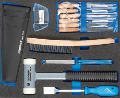Wykonanie: pasuje do wózków warsztatowych GEDORE i stołów warsztatowych na kółkach. Dostawa w 2-kolorowym wkładzie piankowym, dzięki czemu natychmiast zauważa się brakujące narzędzia.