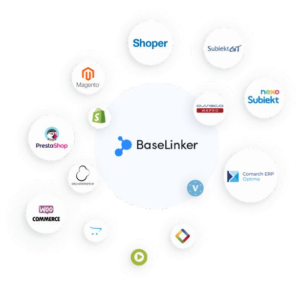 BaseLinker to tzw. integrator, który w swoim zastawieniu posiada blisko 800 różnorodnych - i już gotowych integracji. Tak szeroki zakres pozwala na sprawne połączenie zarówno z popularnymi sklepami internetowymi (na silnikach Shoper, WooCommerce, PrestaShop i innych), jak i wiodącymi serwisami typu marketplace (w tym: Allegro, Ebay czy Amazon).